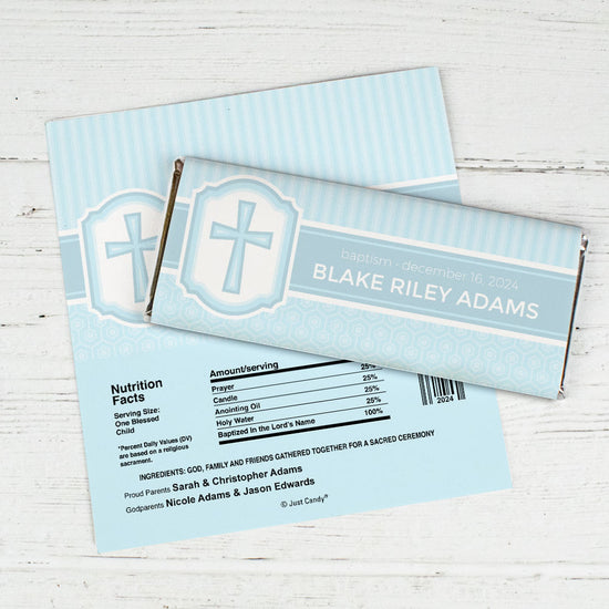 Baptism Personalized Chocolate Bar Wrappers Cross & Stripes