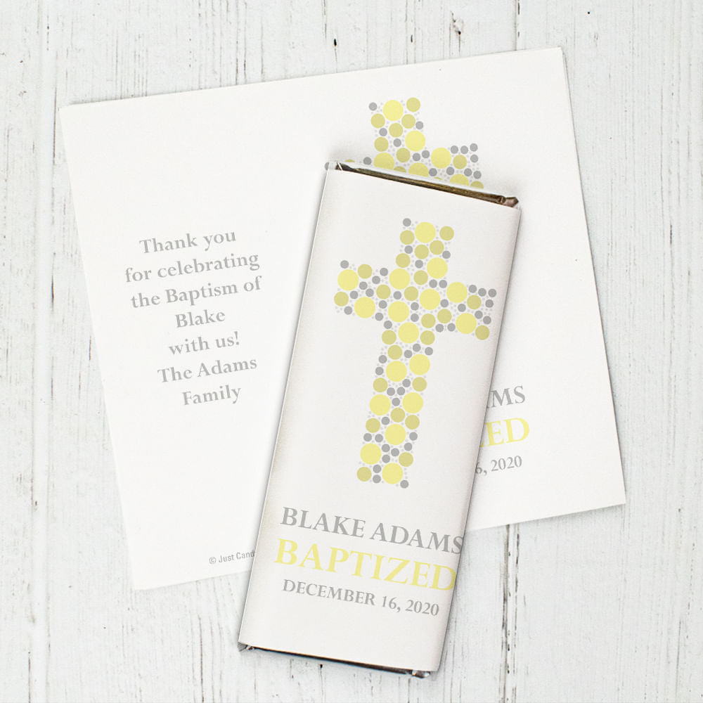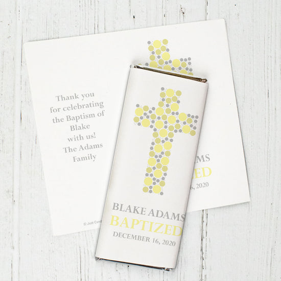 Baptism Personalized Chocolate Bar Wrappers Polka Dot Cross
