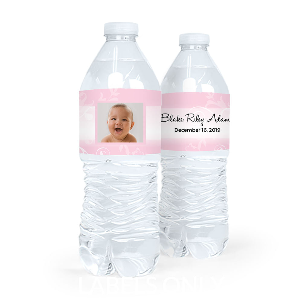 Personalized Girl Baptism Cross and Scroll Water Bottle Labels (5 Labels)