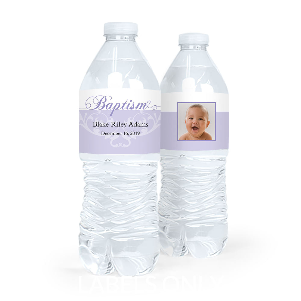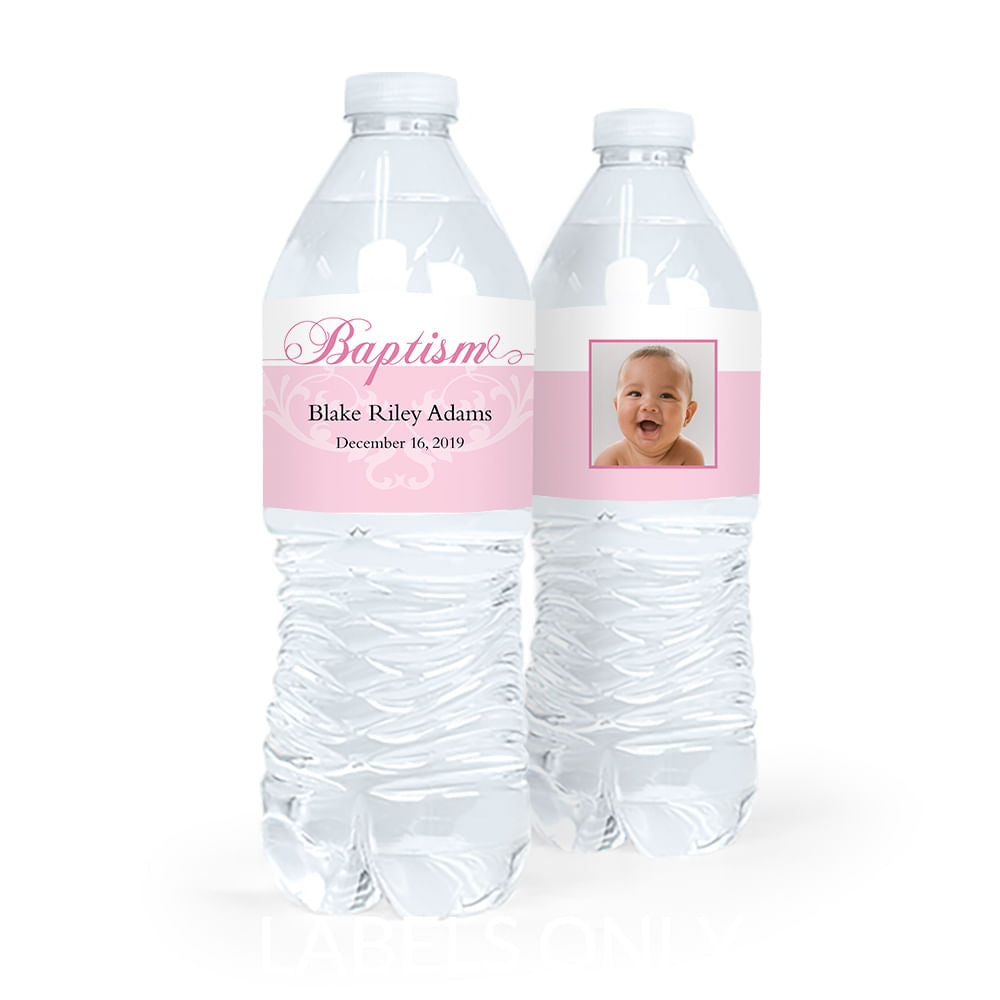 Personalized Girl Baptism Photo and Scroll Water Bottle Labels (5 Labels)