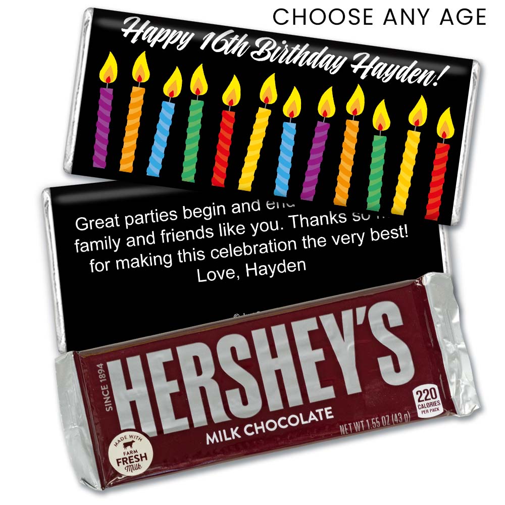 Birthday Personalized Hershey's Milk Chocolate Bar Lit Candles