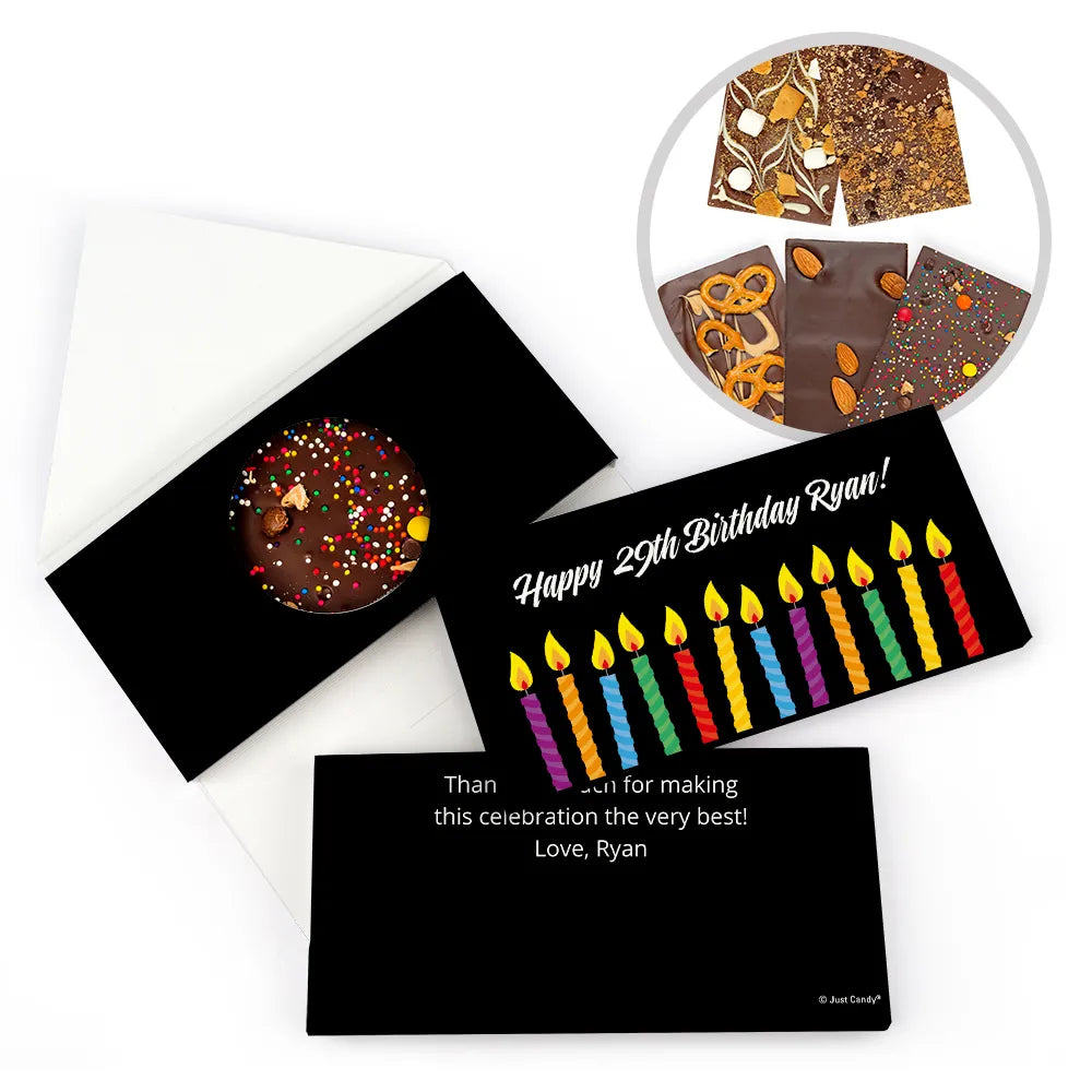 Personalized Birthday Lit Candles Gourmet Infused Belgian Chocolate Bars (3.5oz)