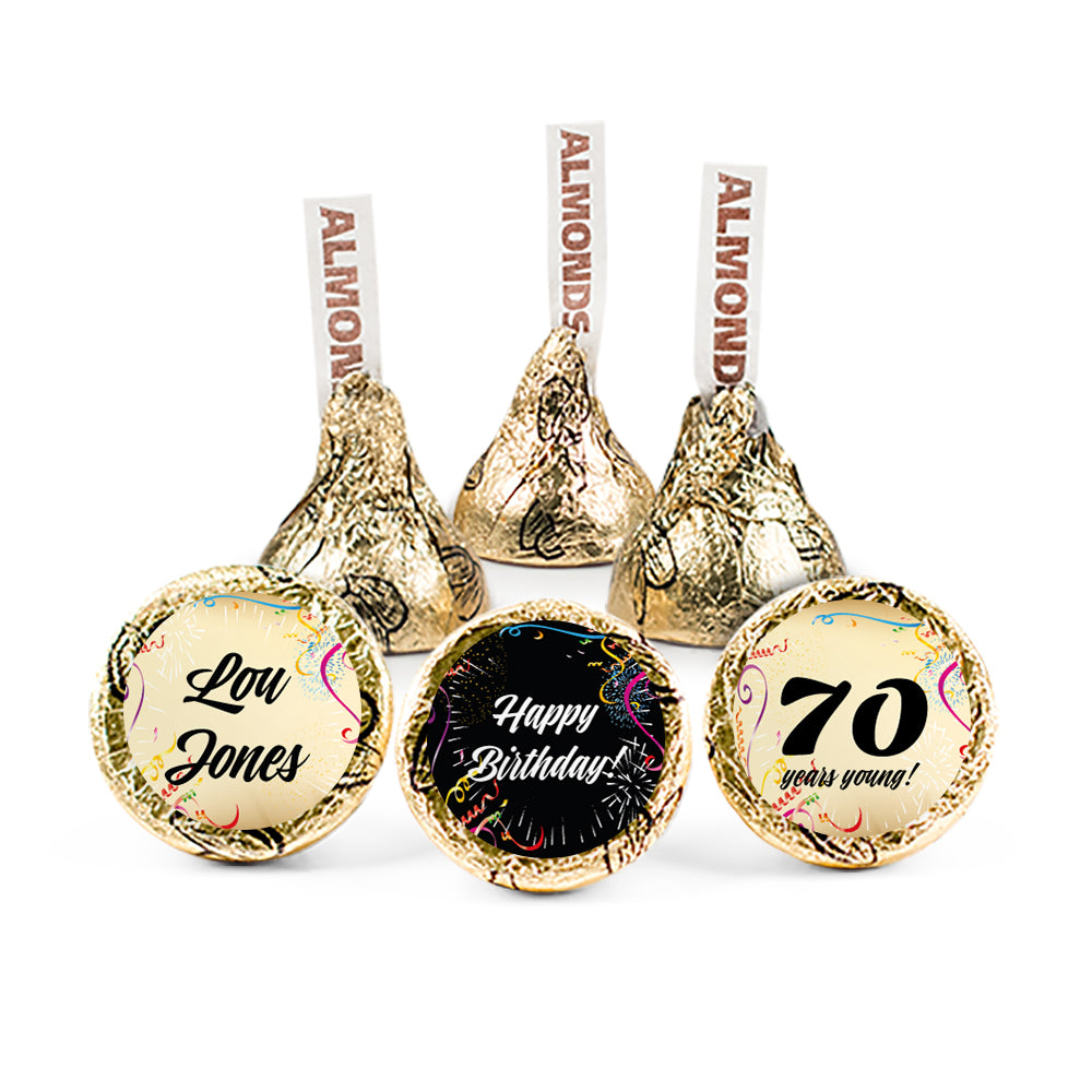 Personalized 70th Milestone Birthday Scroll Confetti Hershey's Kisses