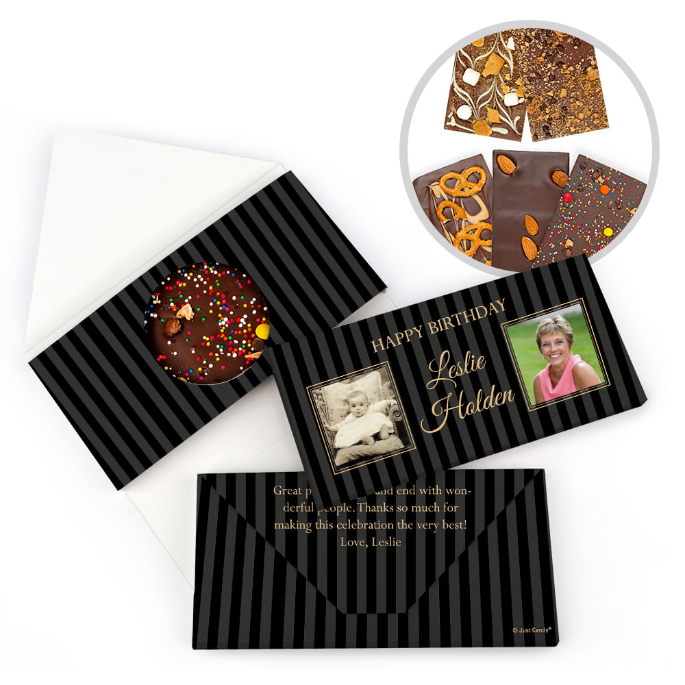 Personalized Birthday Then & Now Pinstripes Gourmet Infused Belgian Chocolate Bars (3.5oz)