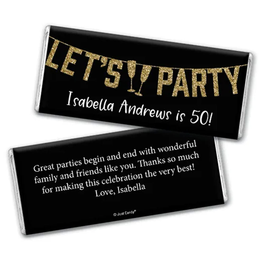 Personalized Milestone Birthday Let's Party Hershey's Milk Chocolate Bar & Wrapper