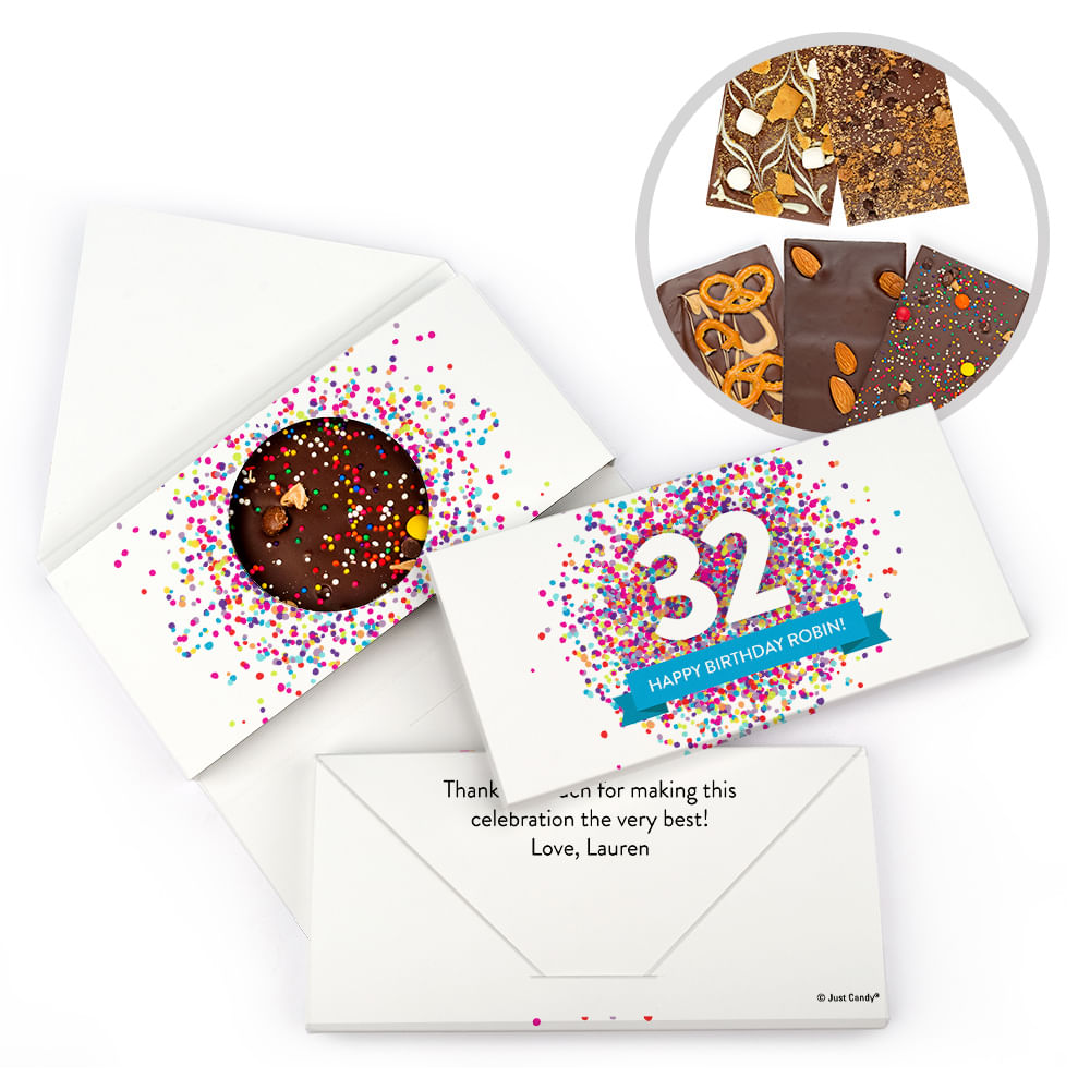 Personalized Birthday Confetti Burst Gourmet Infused Belgian Chocolate Bars (3.5oz)