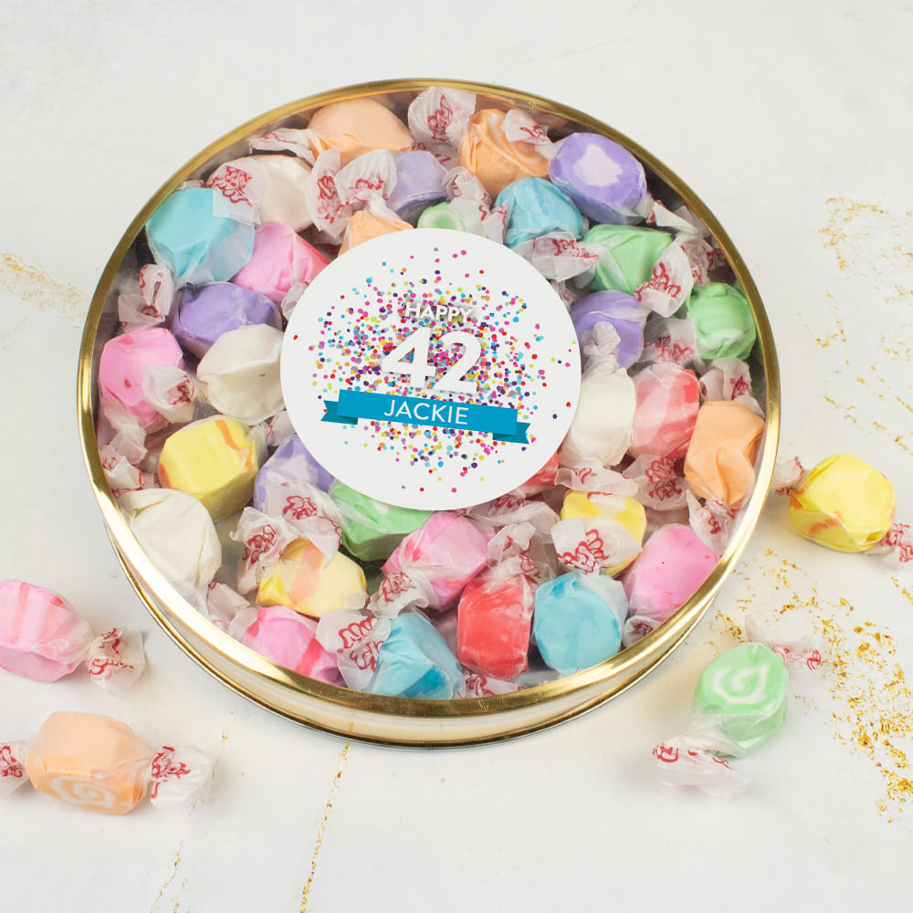 Personalized Birthday Confetti Large Gold Taffy Gift Tin