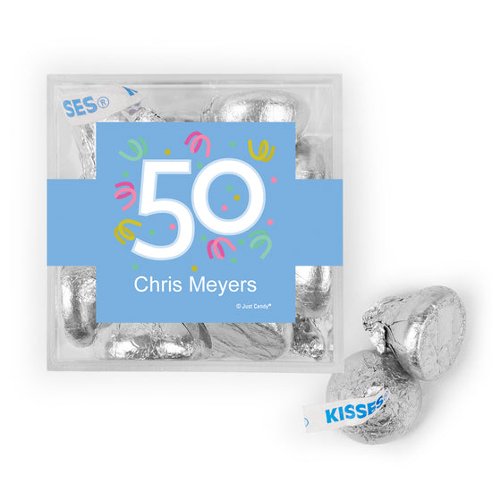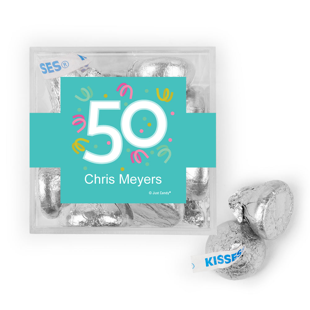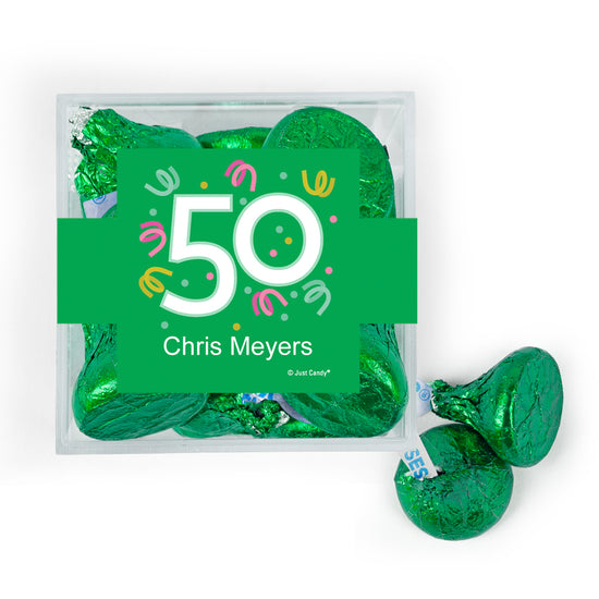 Personalized Milestone 50th Birthday Confetti JUST CANDY® favor cube with Hershey's Kisses