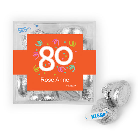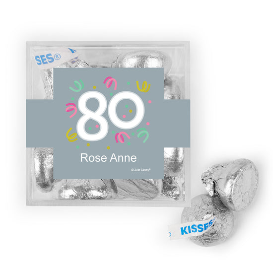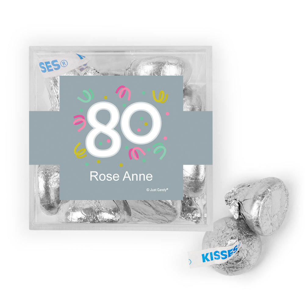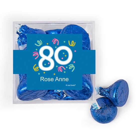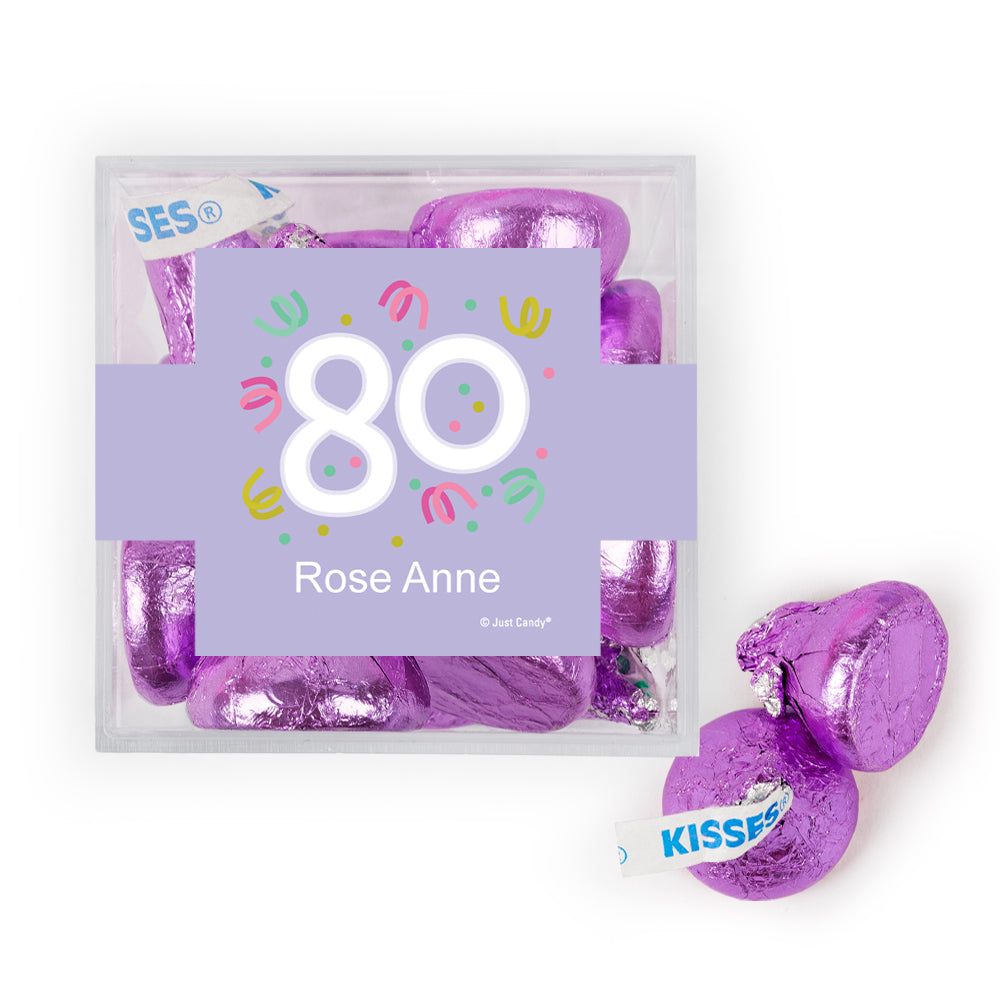 Personalized Milestone 80th Birthday Confetti JUST CANDY® favor cube with Hershey's Kisses
