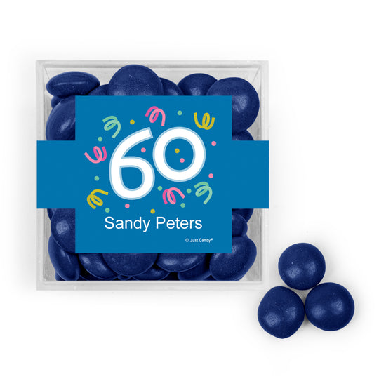 Personalized Milestone 60th Birthday Confetti JUST CANDY® favor cube with Just Candy Milk Chocolate Minis