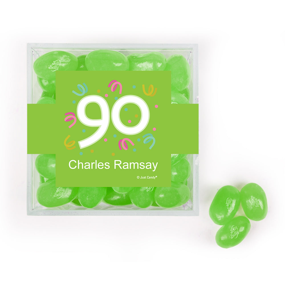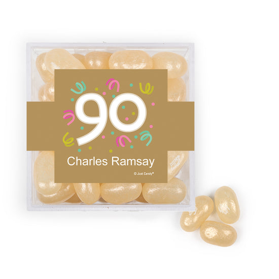 Personalized Milestones 90th Birthday Confetti JUST CANDY® favor cube with Jelly Belly Jelly Beans