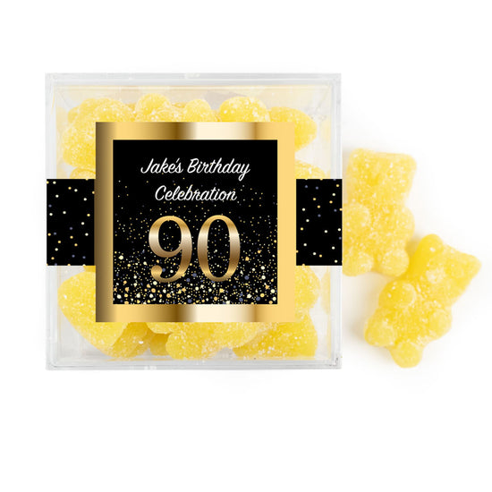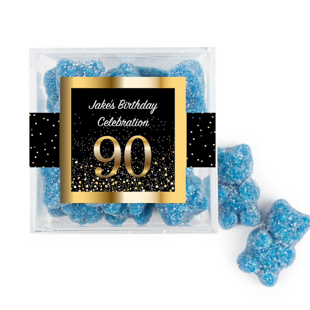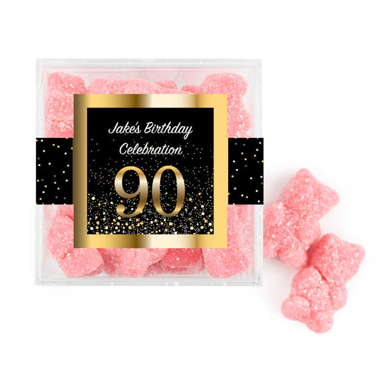 Personalized Milestones 90th Elegant Birthday Bash JUST CANDY® favor cube with Sugar Sanded Gummy Bears