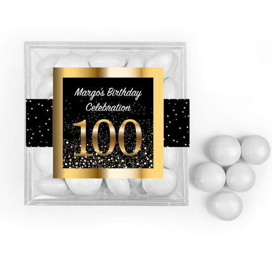Personalized Milestone 100th Elegant Birthday Bash JUST CANDY® favor cube with Just Candy Milk Chocolate Minis