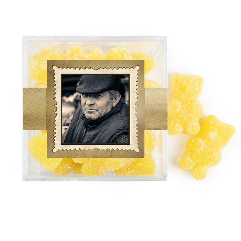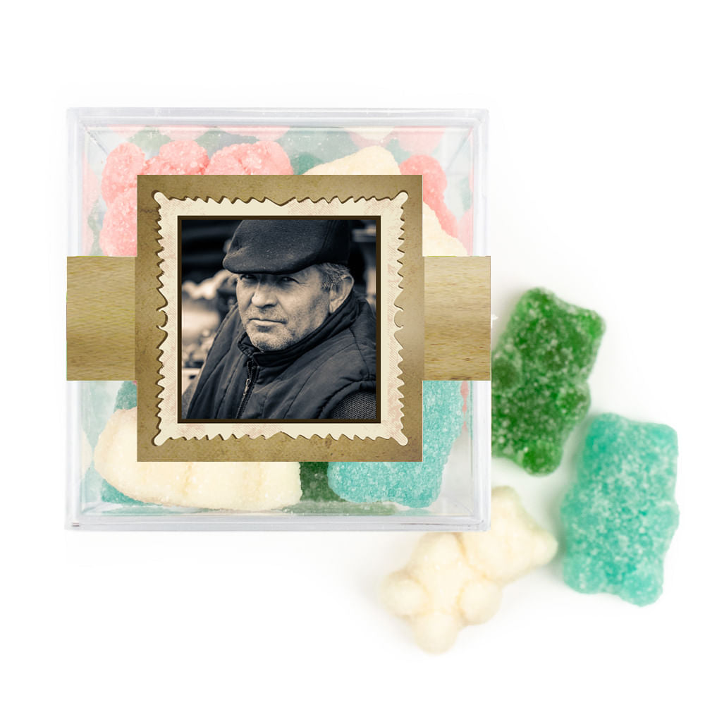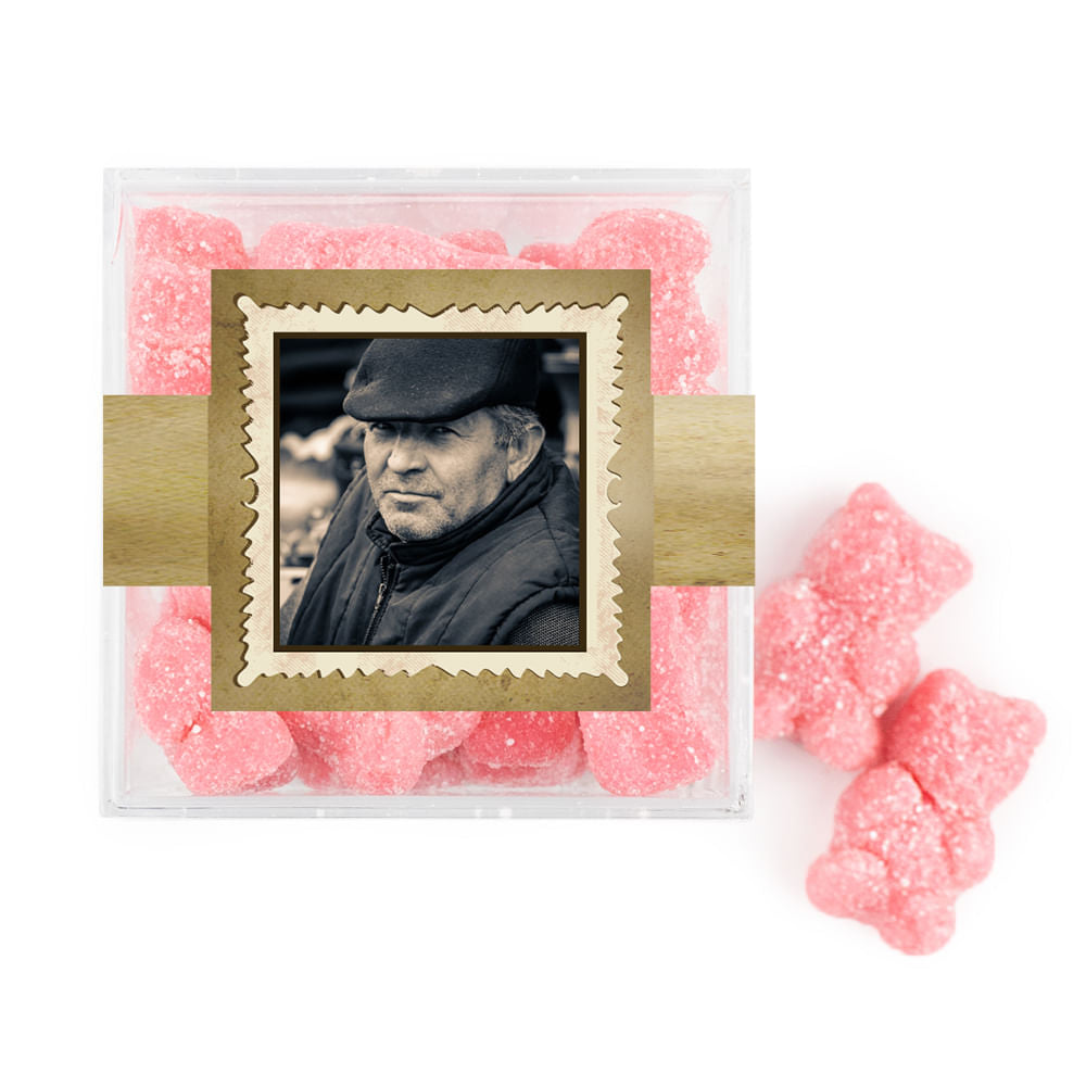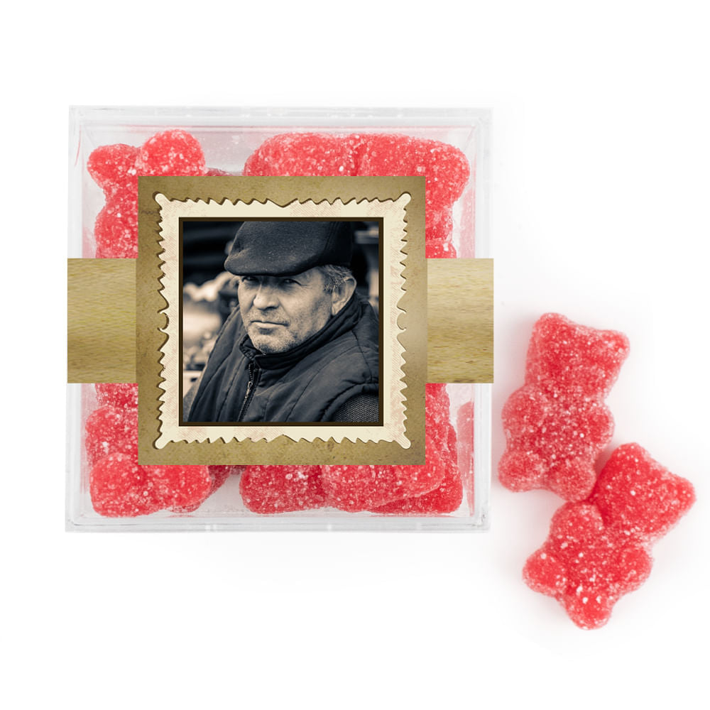 - Includes: Completely Assembled Acrylic Cube, Sticker, 3oz Sugar Sanded Gummy Bears (approx. 16 pieces)