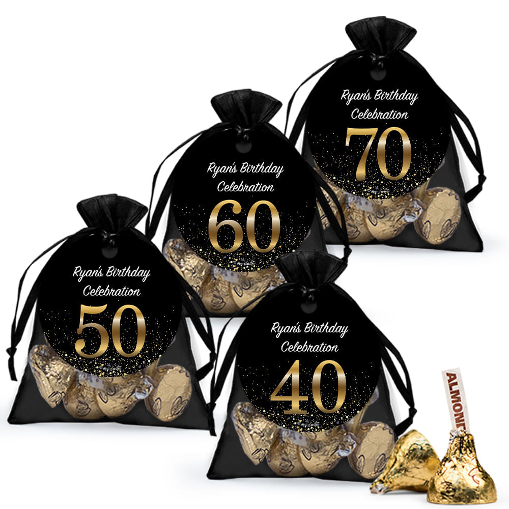Personalized Elegant Birthday Bash Hershey's Kisses in Organza Bags with Gift Tag