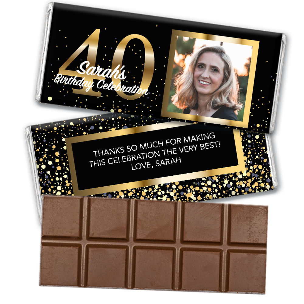 Personalized Milestone Birthday Elegant Birthday Bash Belgian Chocolate Bar with Photo