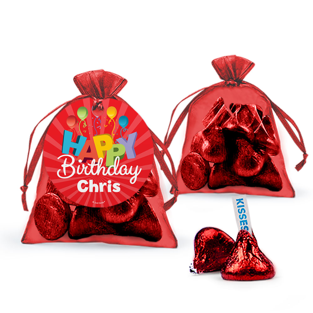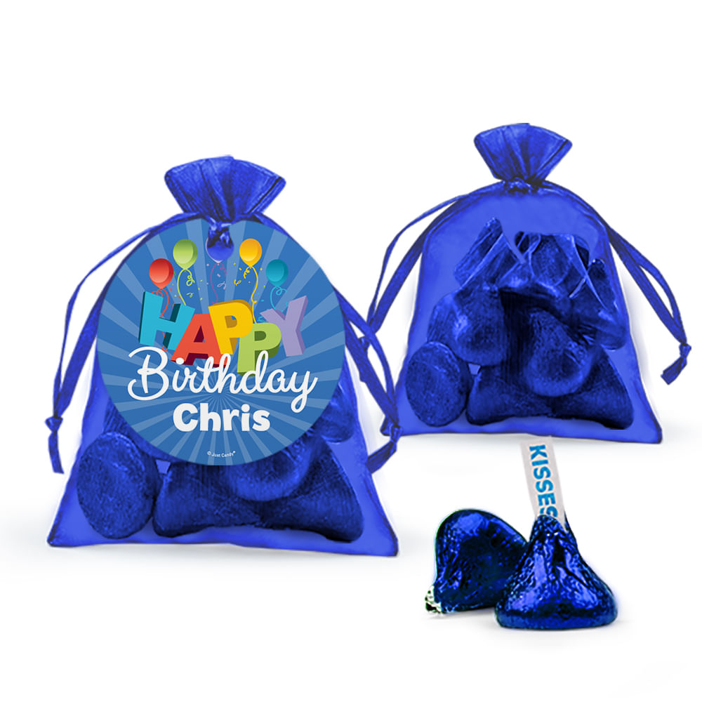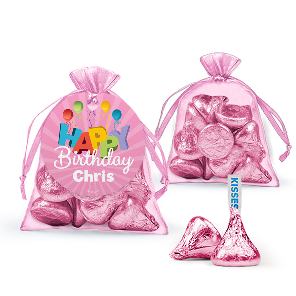 Personalized Happy Birthday Hershey's Kisses Organza Bag with Gift Tag