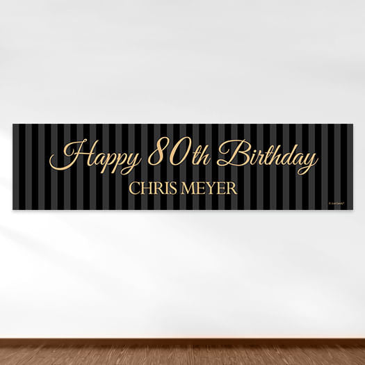 Personalized Birthday 80th Regal Stripes 5 Ft. Banner