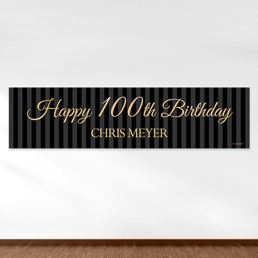 Personalized Birthday 100th Regal Stripes 5 Ft. Banner