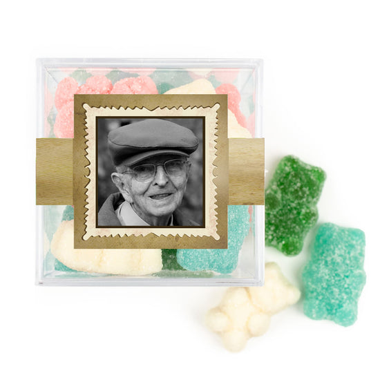 - Includes: Completely Assembled Acrylic Cube, Sticker, 3oz Sugar Sanded Gummy Bears (approx. 16 pieces)