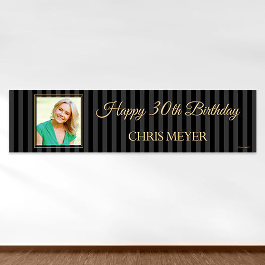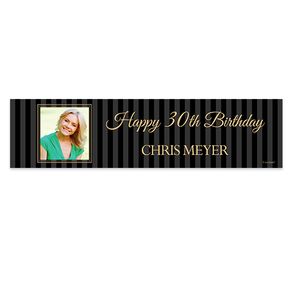 Personalized Birthday 30th Pinstripe Photo 5 Ft. Banner