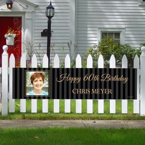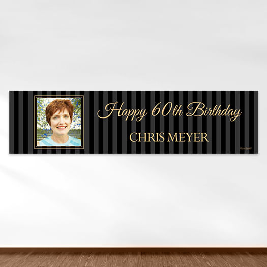 Personalized Birthday 60th Pinstripe Photo 5 Ft. Banner