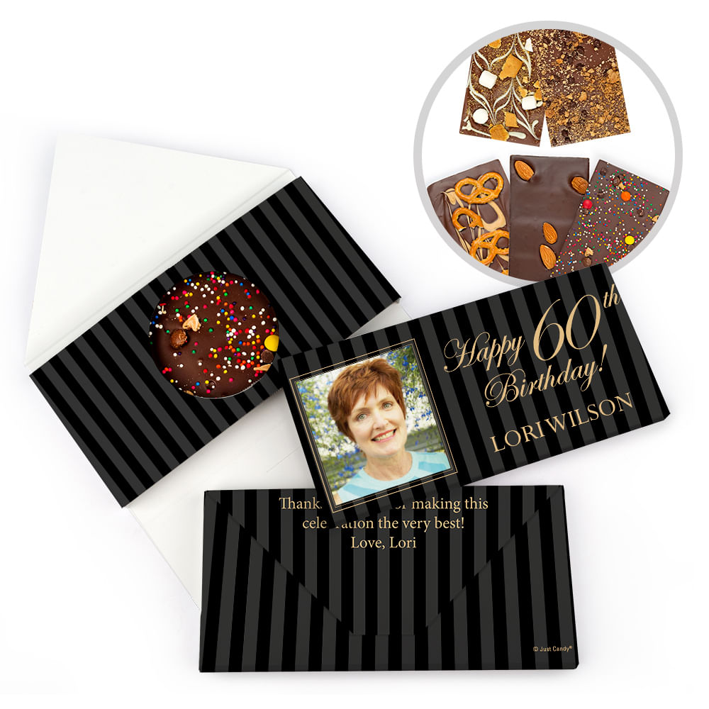 Personalized Milestone Birthday 60th Photo Pinstripes Gourmet Infused Belgian Chocolate Bars (3.5oz)
