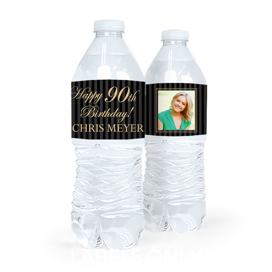 Personalized Milestones Birthday Photo 90th Water Bottle Sticker Labels (5 Labels)