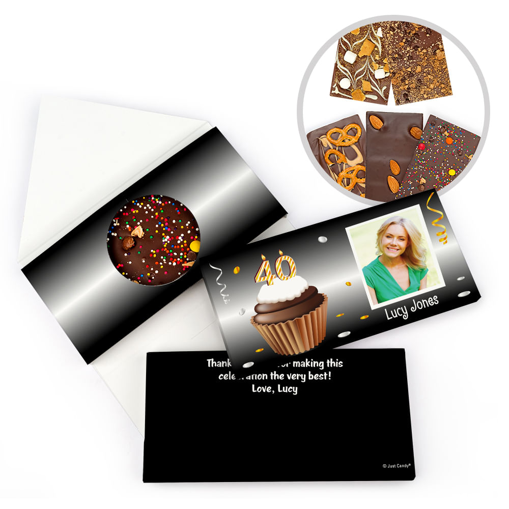 Personalized Milestone Birthday 40th Cupcake Photo Gourmet Infused Belgian Chocolate Bars (3.5oz)