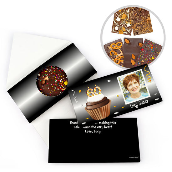 Personalized Milestone Birthday 60th Cupcake Photo Gourmet Infused Belgian Chocolate Bars (3.5oz)