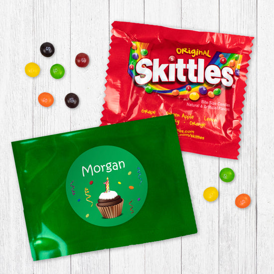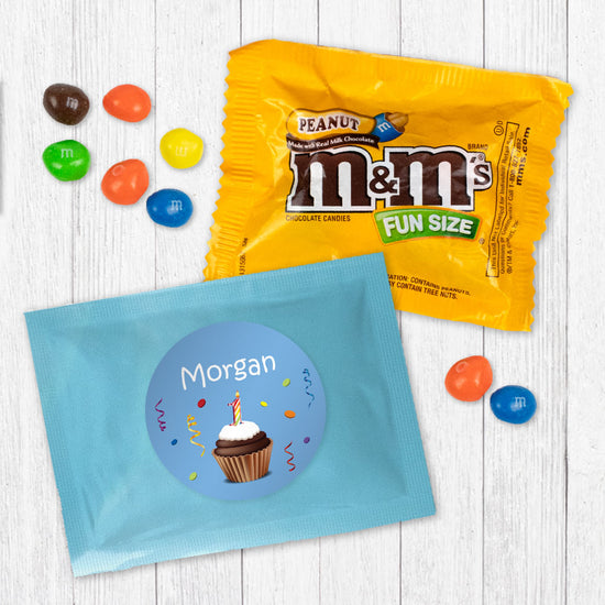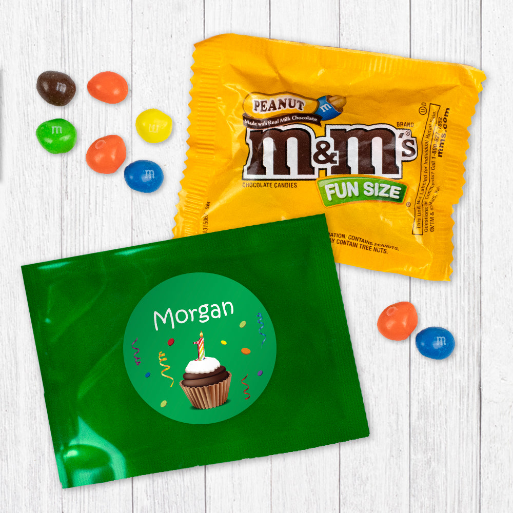 Personalized First Birthday Cupcake Candy Favor Bag - M&Ms or Skittles