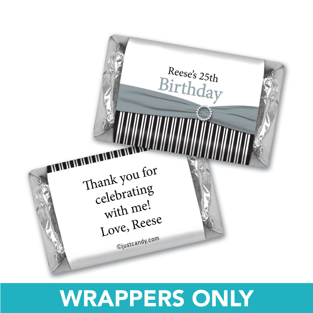 Birthday Personalized Hershey's Miniatures Wrappers Fancy Bow & Stripes