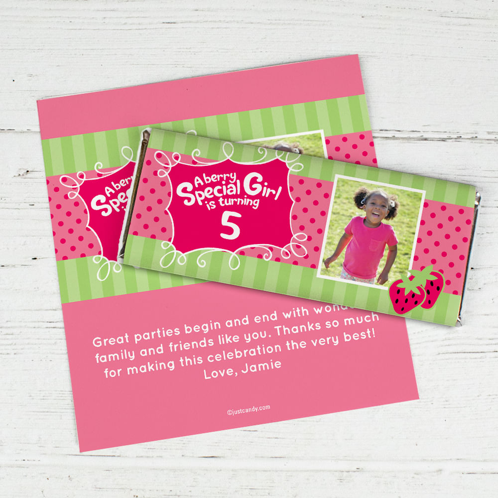 Birthday Personalized Chocolate Bar Wrappers Strawberry Shortcake Berry Inspired