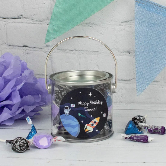 - Each Paint Can Includes Approximately : 8 Milk Chocolate Hershey's Kisses, 8 Dum Dums, 8 Pieces of Salt Water Taffy, 4 Caramel Filled Foil Balls