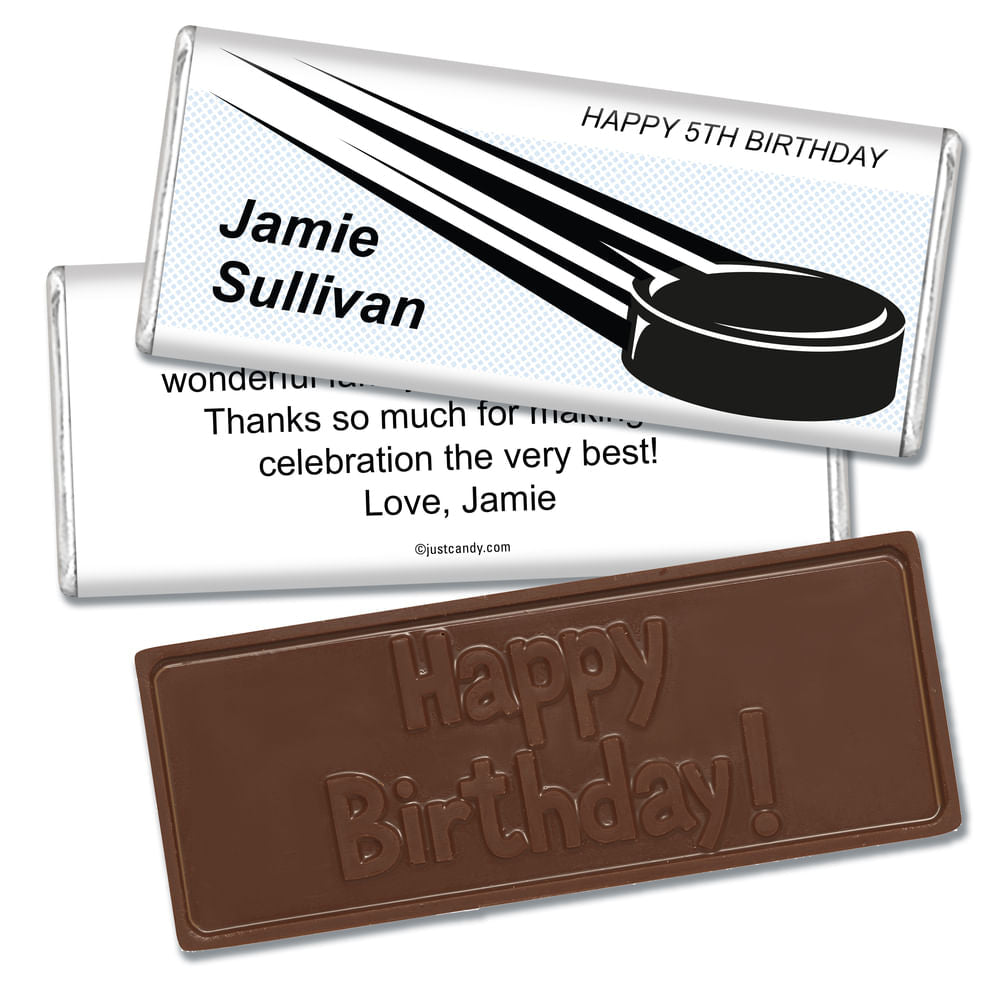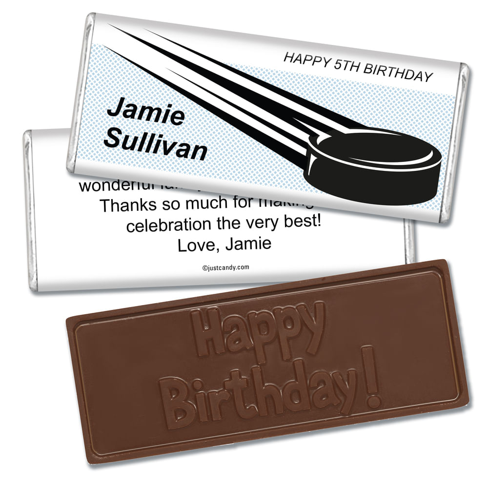Birthday Personalized Embossed Chocolate Bar Hockey Puck