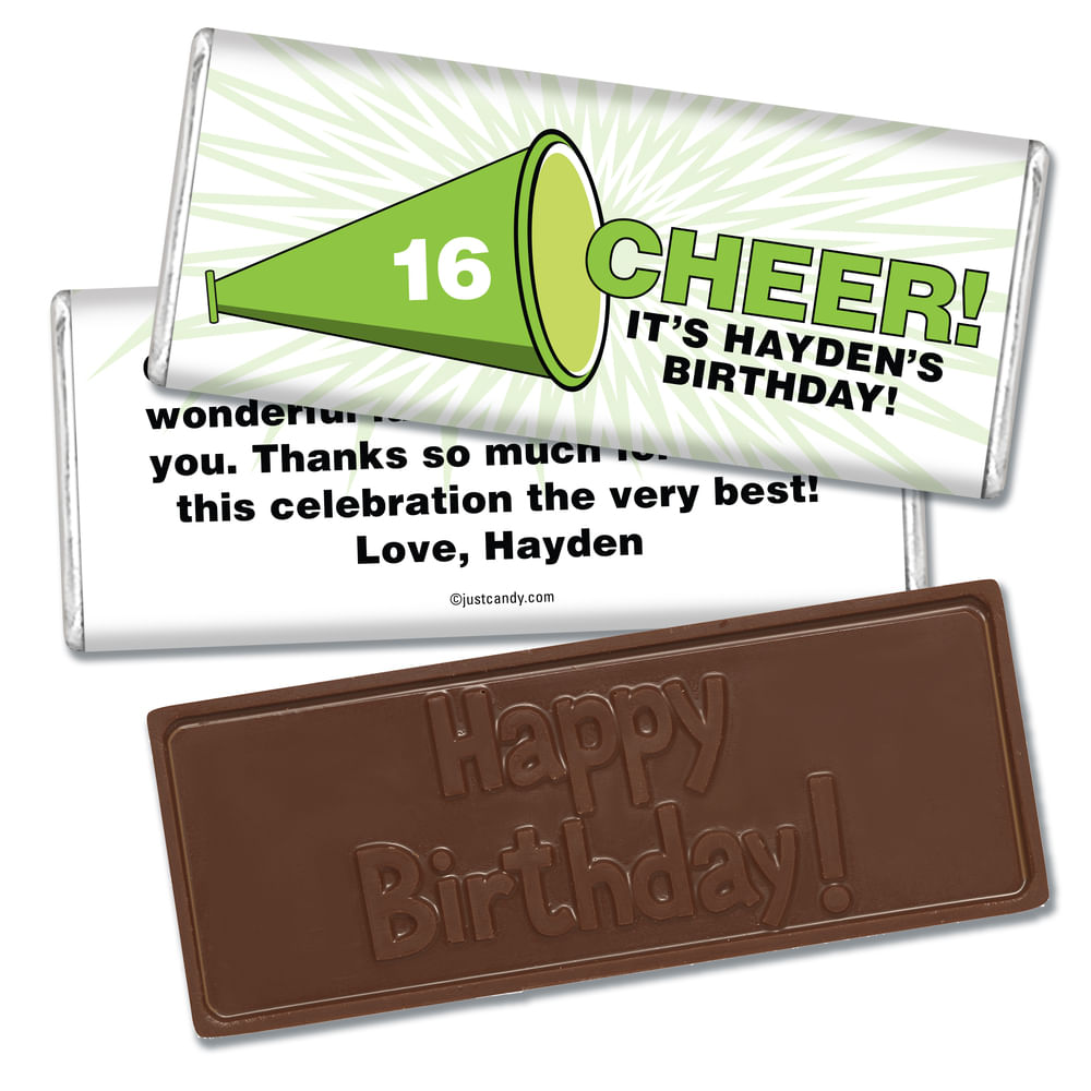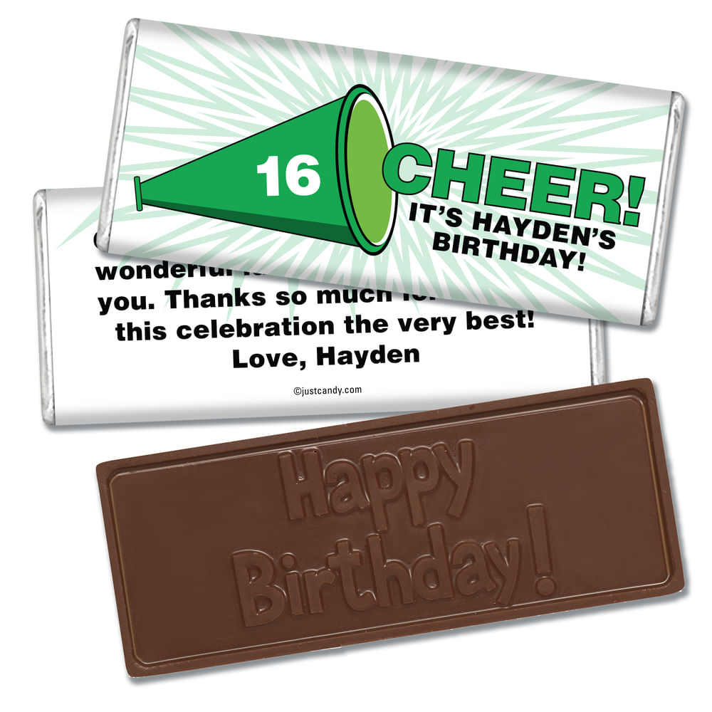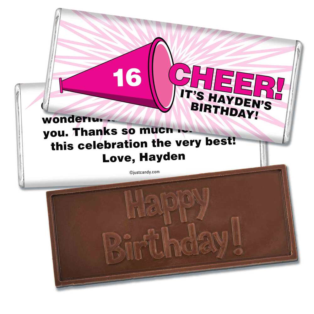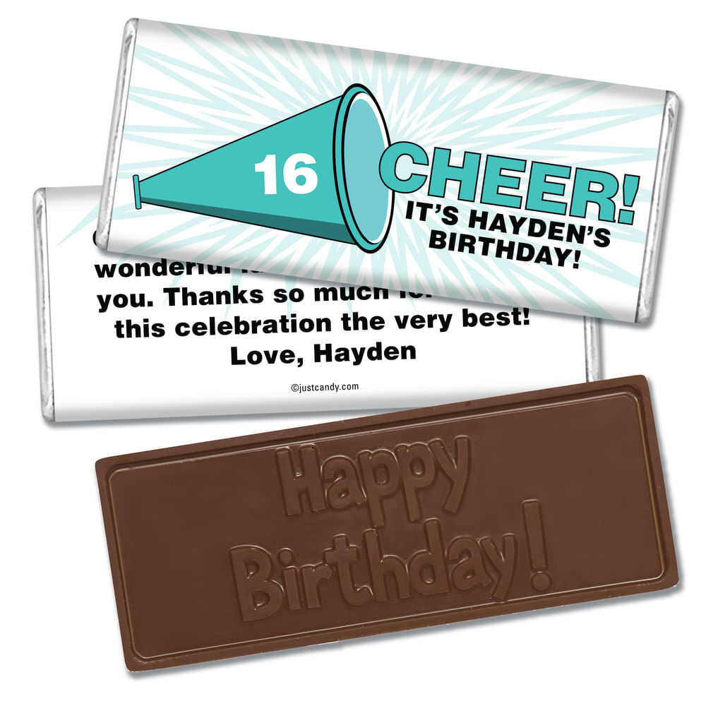 Birthday Personalized Embossed Chocolate Bar Sweet 16 Cheer