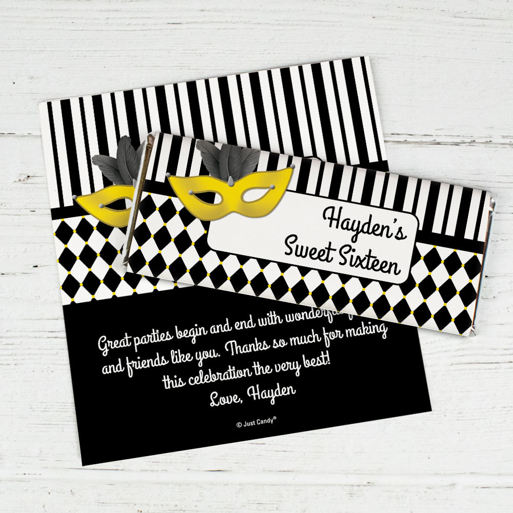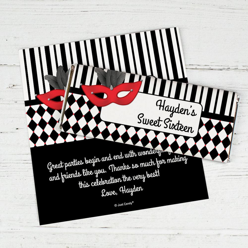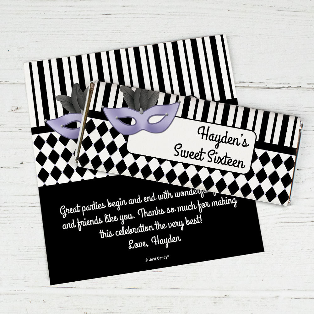 Birthday Personalized Chocolate Bar Wrappers Harlequin Masquerade