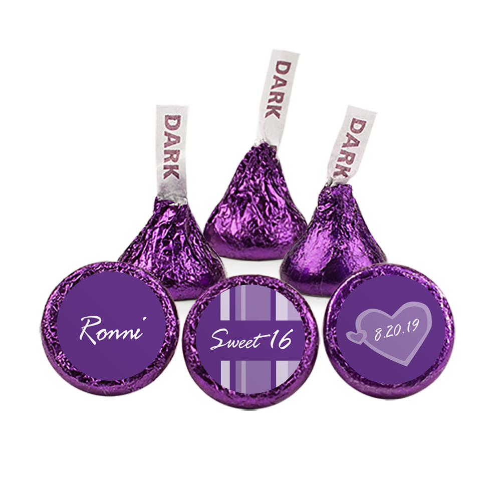 - Dark Purple foil Hershey's Kisses contain dark chocolate