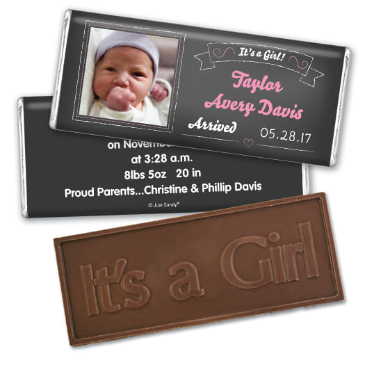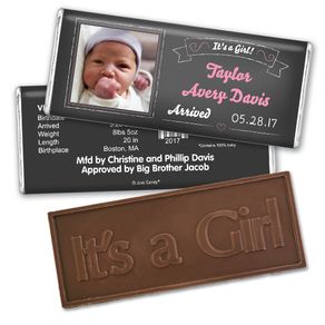 Baby Girl Announcement Personalized Embossed Chocolate Bar Chalkboard Photo