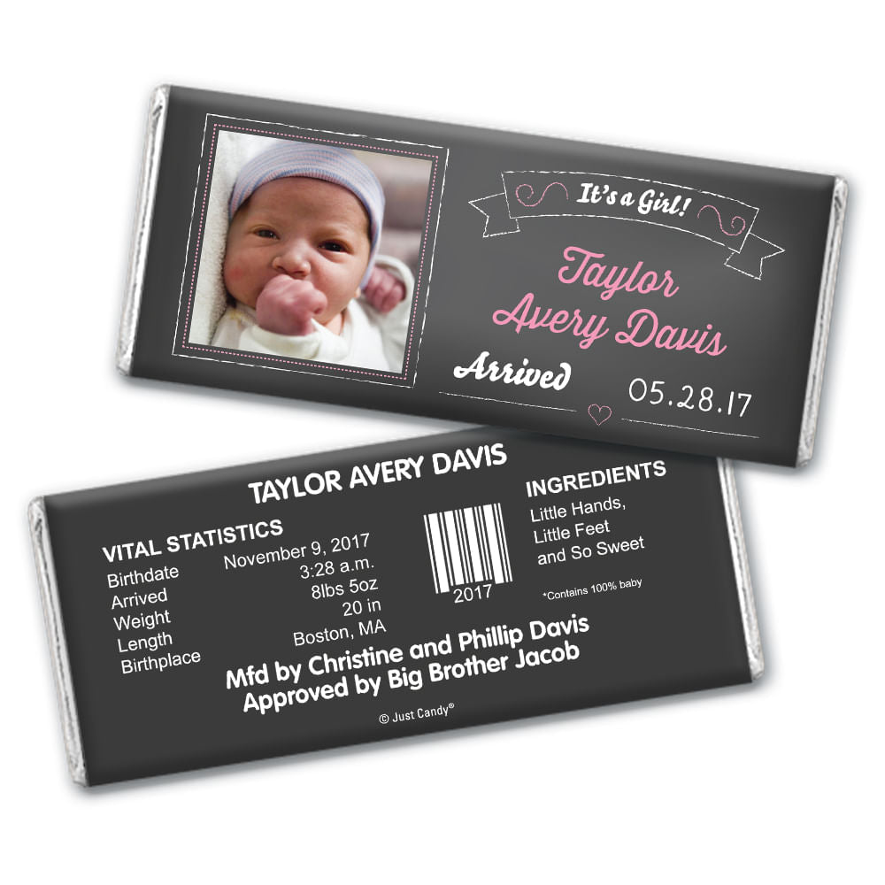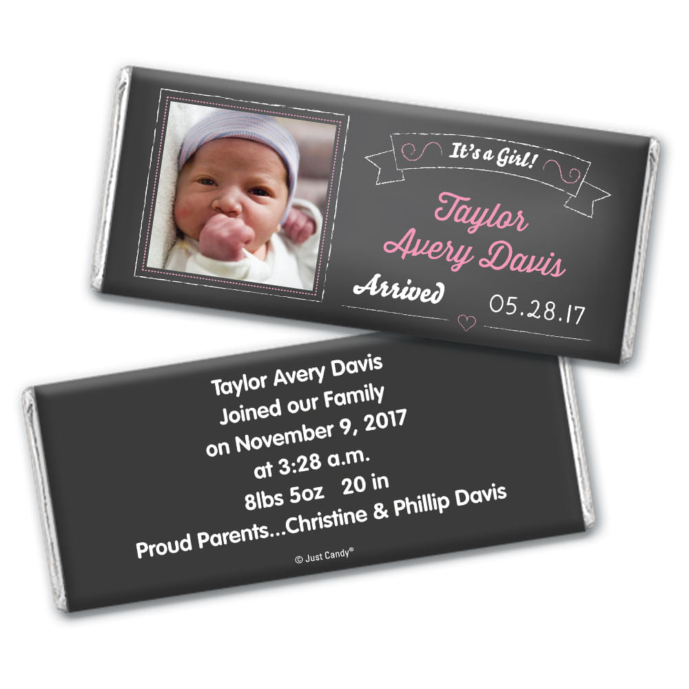Baby Girl Announcement Personalized Hershey's Milk Chocolate Bar Chalkboard Photo