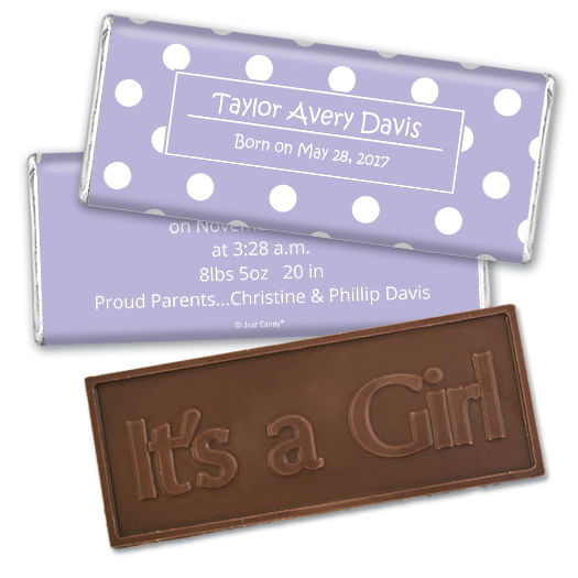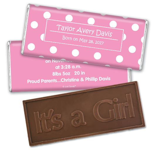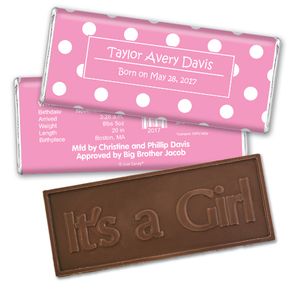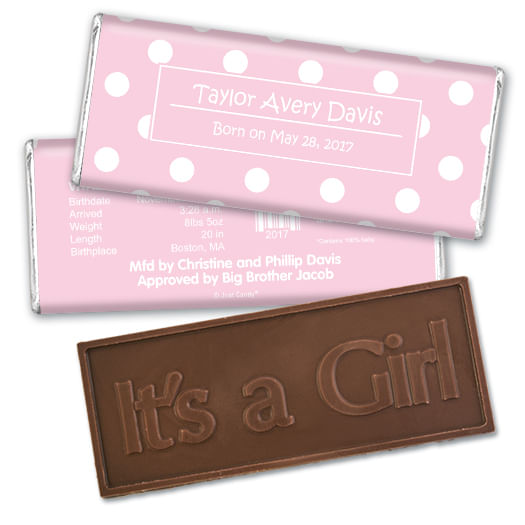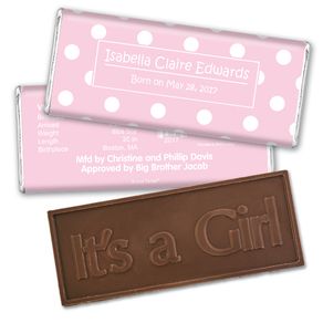 Baby Girl Announcement Personalized Embossed Chocolate Bar Polka Dots
