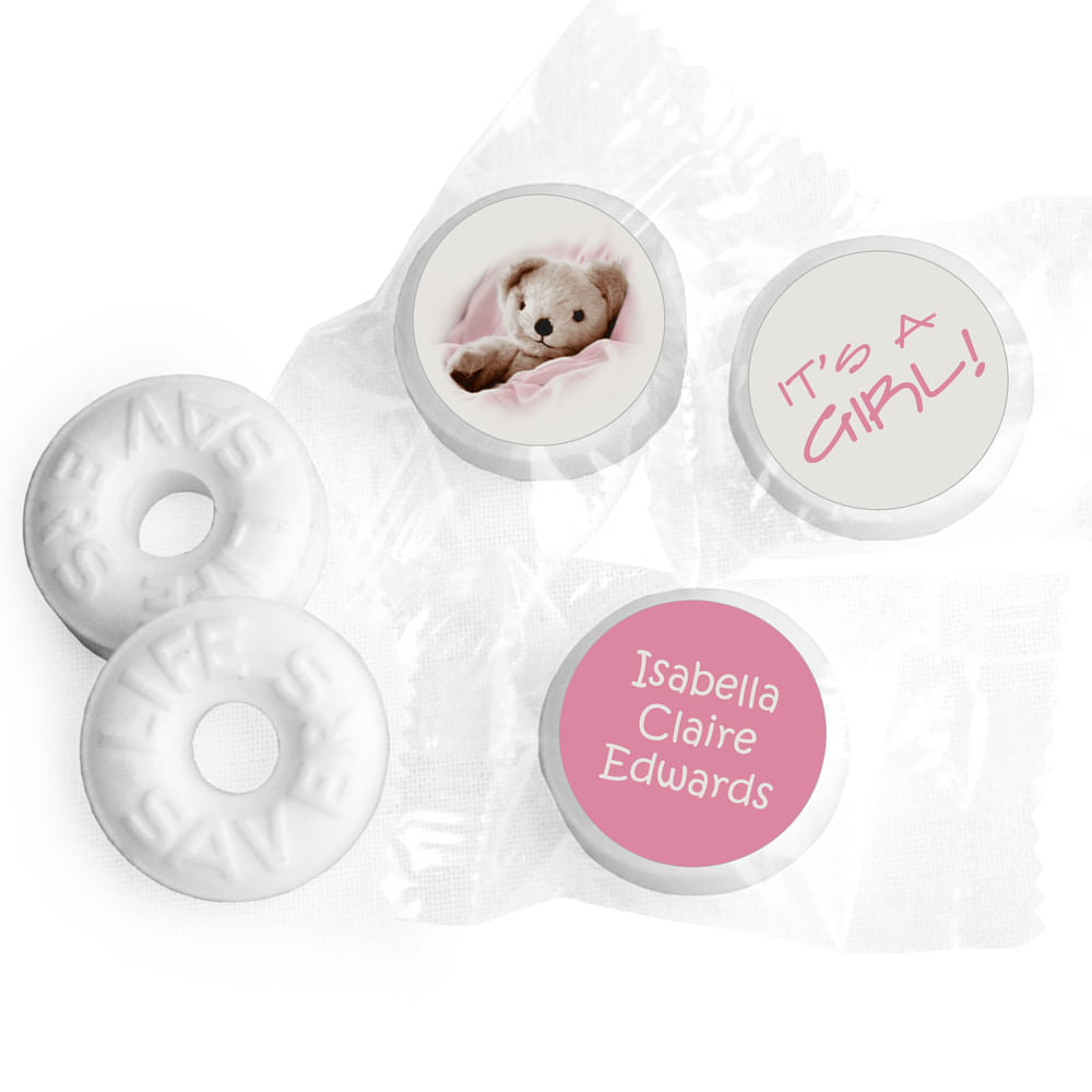Baby Girl Announcement Personalized Life Savers Mints It's a Girl! Teddy Bear