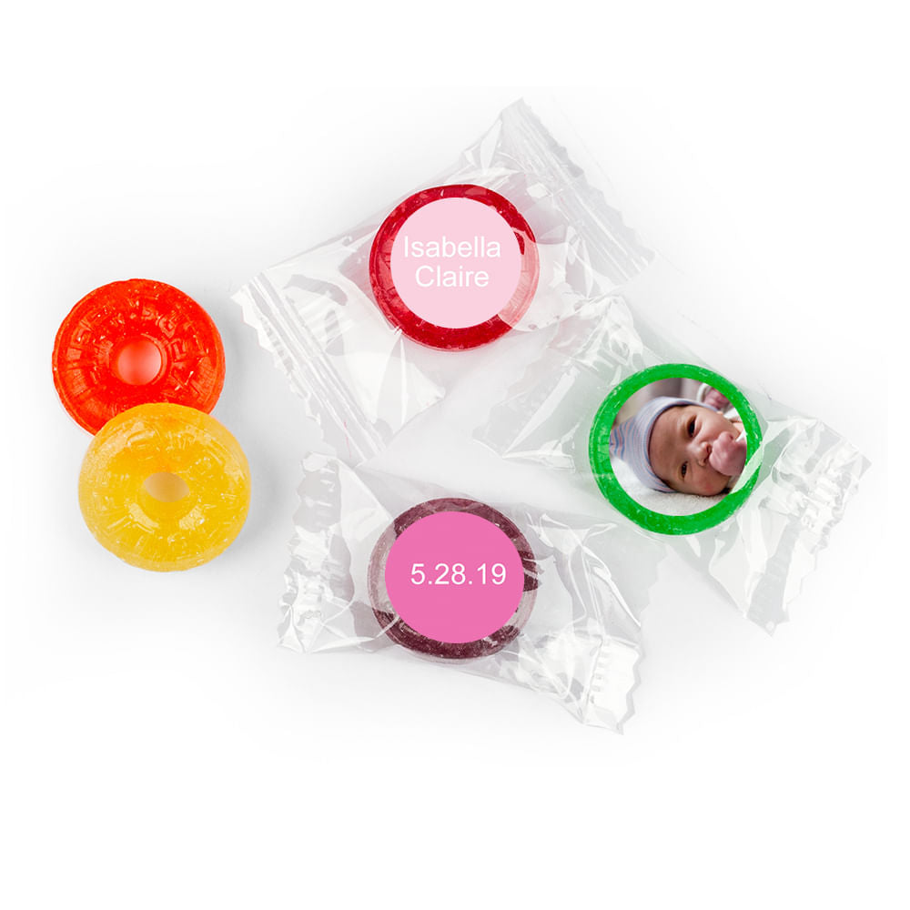 Baby Girl Announcement Personalized LifeSavers 5 Flavor Hard Candy Full Photo (300 Pack)