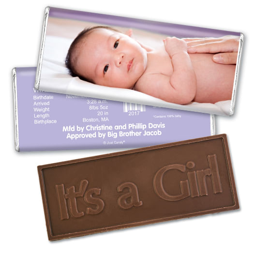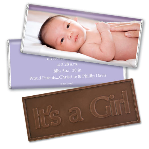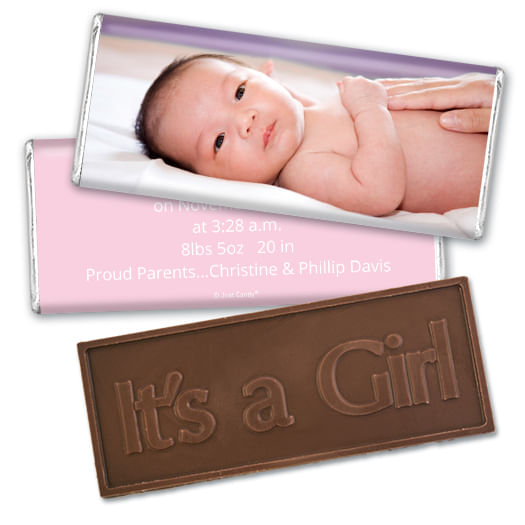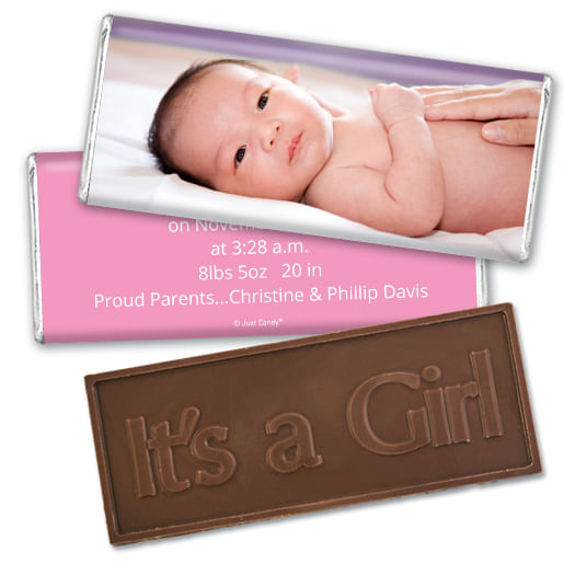 Baby Girl Announcement Personalized Embossed Chocolate Bar Full Photo