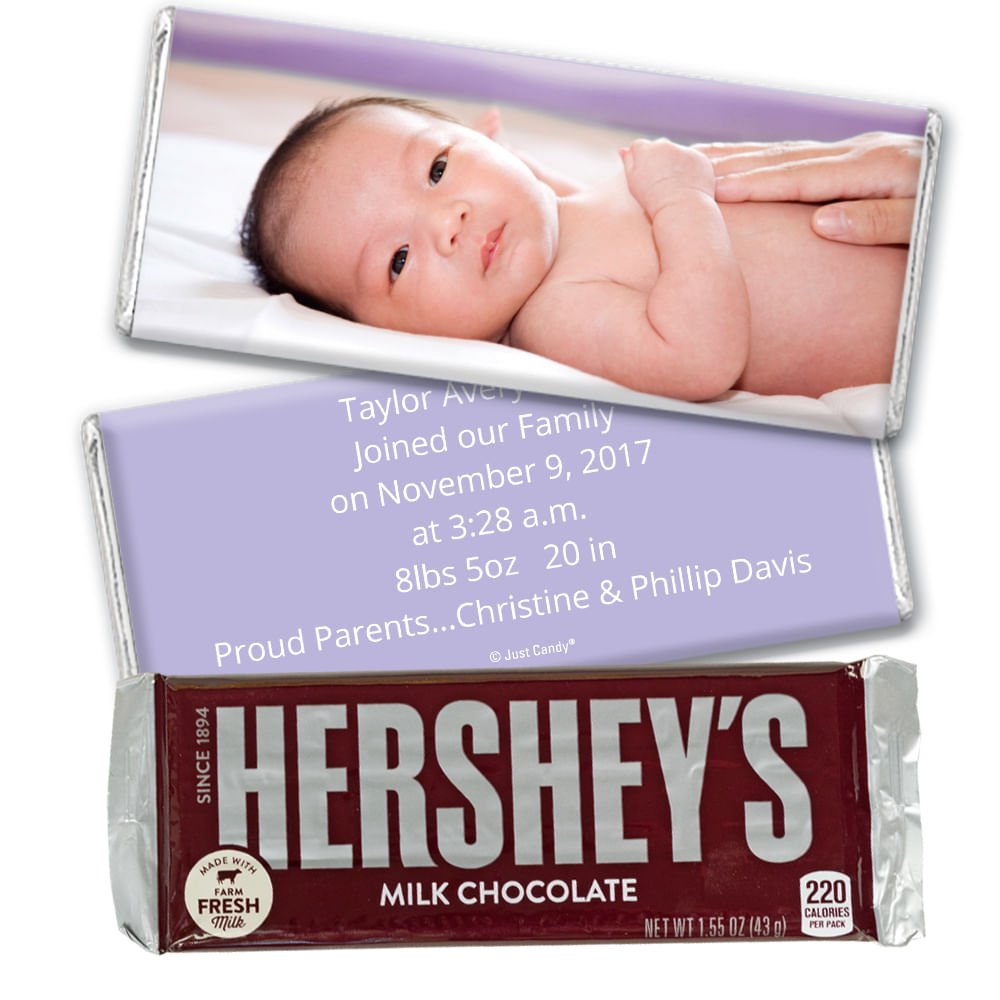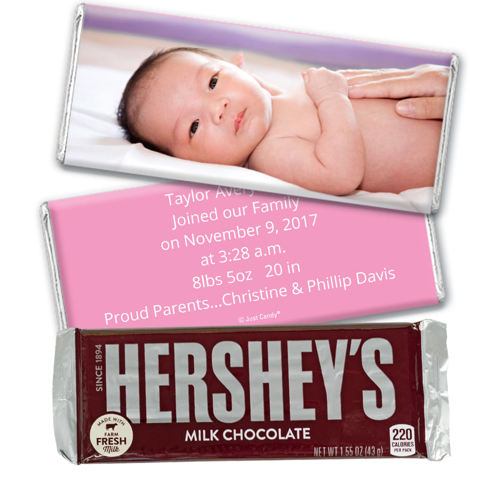 Baby Girl Announcement Personalized Hershey's Milk Chocolate Bar Full Photo