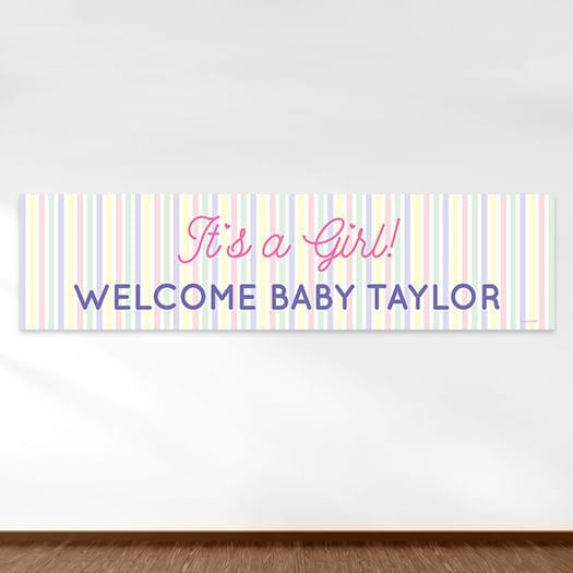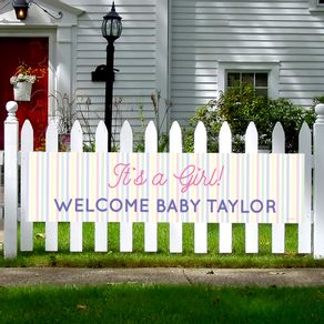 Personalized It's a Girl Stripes Girl Baby Announcement 5 Ft. Banner