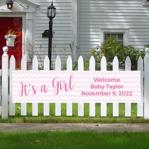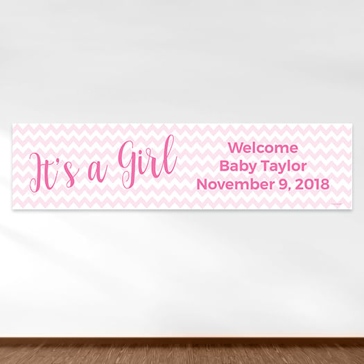 Personalized It's a Girl Chevron Girl Baby Announcement 5 Ft. Banner