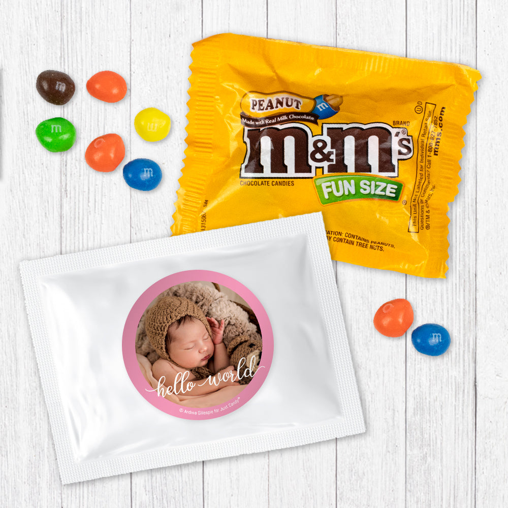 Personalized Hello World Baby Girl Announcement Candy Favor Bag - M&Ms or Skittles