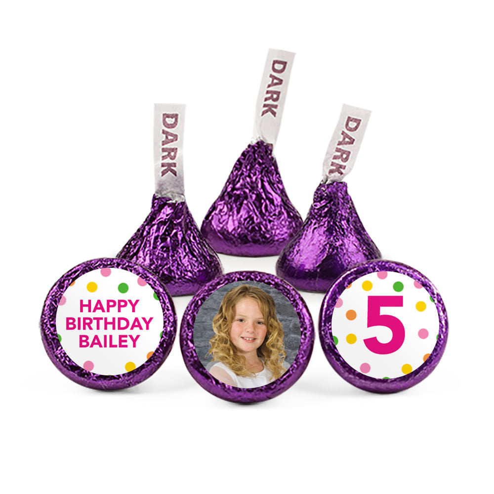 - Dark Purple foil Hershey's Kisses contain dark chocolate