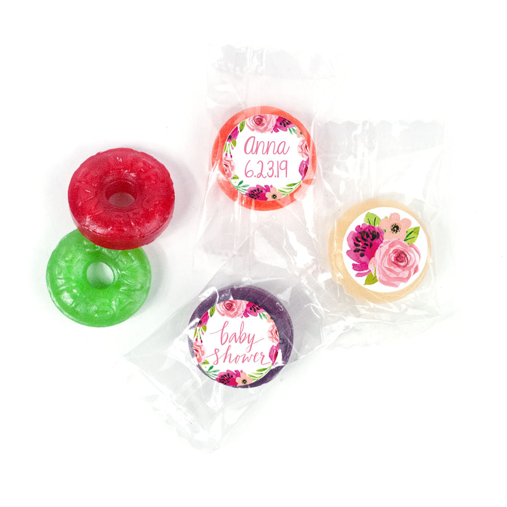 Personalized Bonnie Marcus Baby Shower Painted Petals LifeSavers 5 Flavor Hard Candy